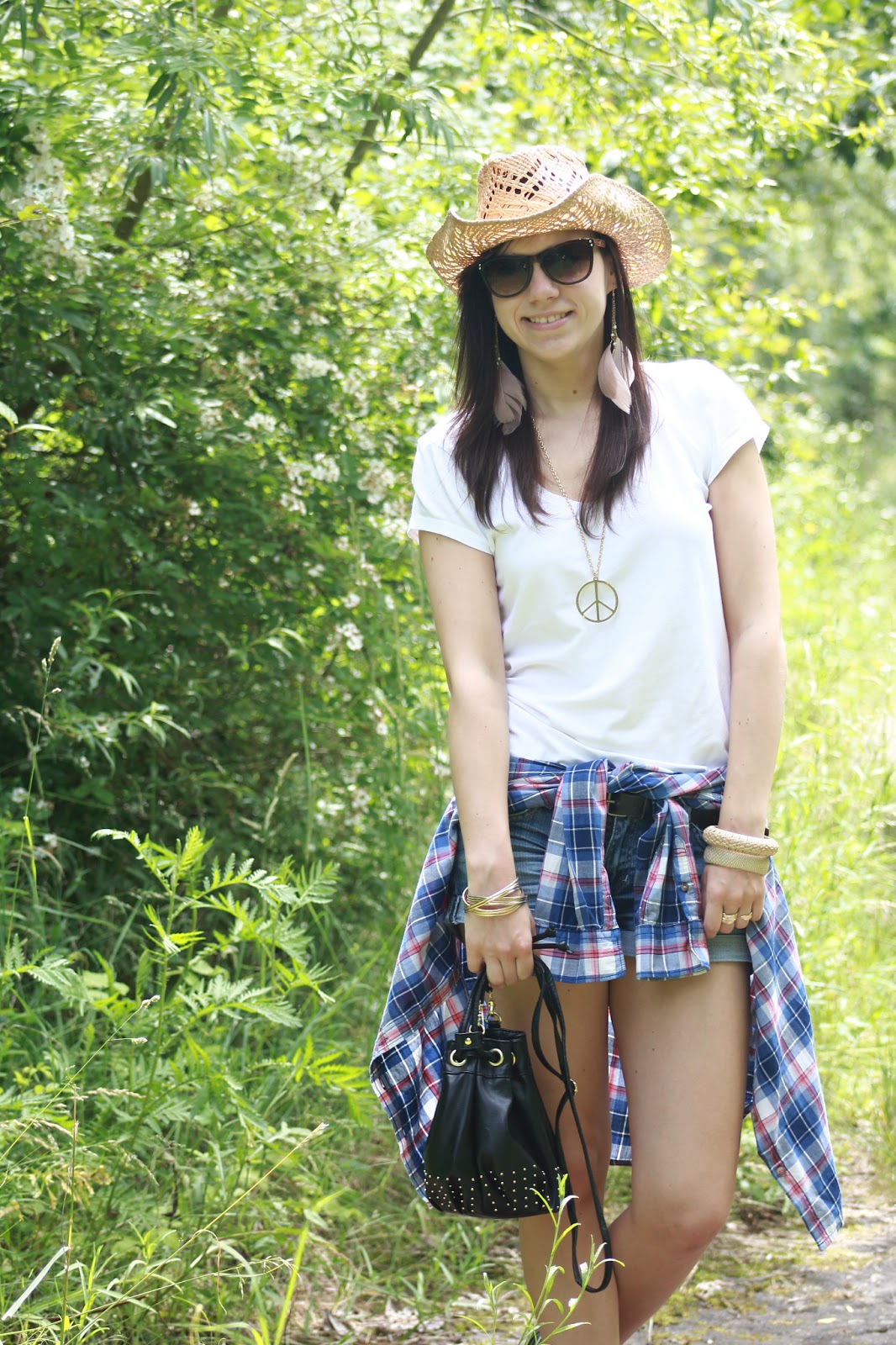 Pants, Chambray Top, Hat, Bag, Jewelry: H&M